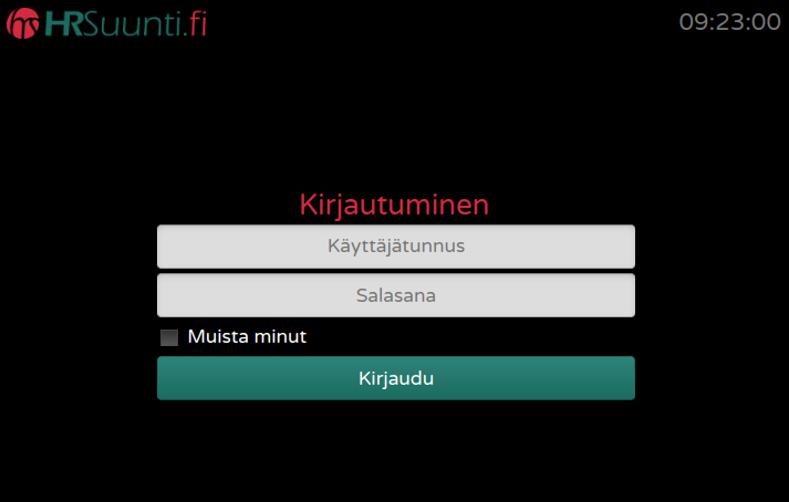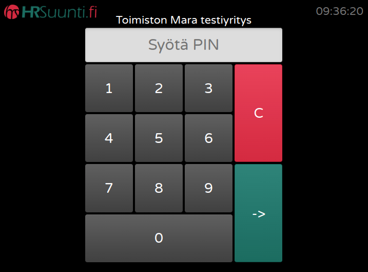 Kirjautumisen jälkeen avautuu HRKellon päänäkymä, josta työntekijät voivat kirjautua sisään syöttämällä heidän PIN-koodinsa.