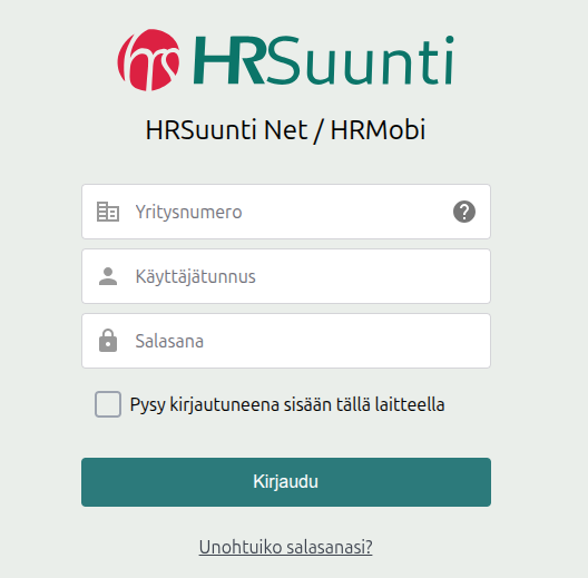 Sähköpostilla kirjautuminen ohjelmaan tapahtuu myös osoitteessa www.hrsuunti.net